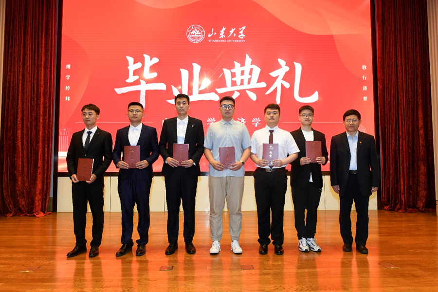 伴随着悠扬的山大校歌,毕业典礼落下帷幕,学位授予仪式开启。林平为每位毕业生颁发学位证书并合影留念。