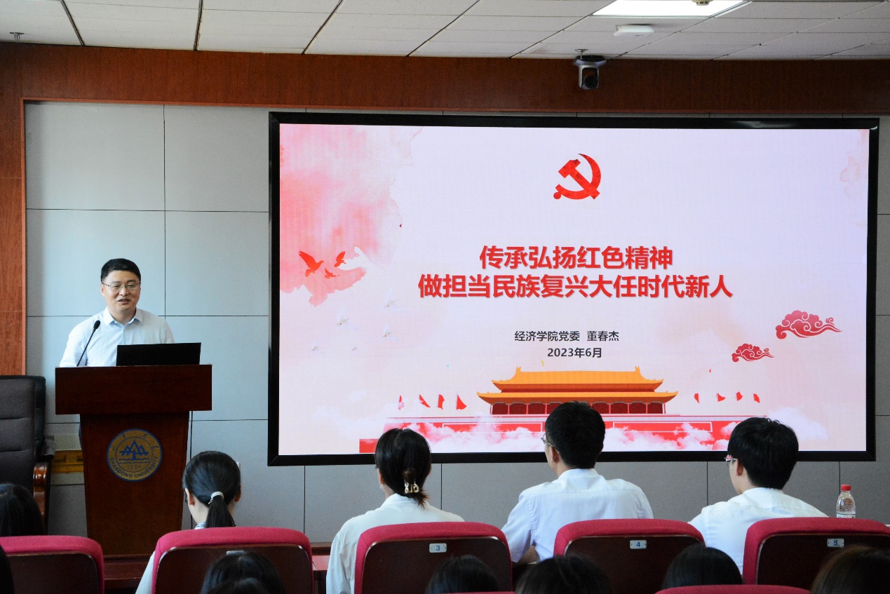 董春杰以“传承弘扬红色精神,做担当民族复兴大任时代新人”为题为毕业生党员授课。他以中国共产党的诞生和发展历史作为引入,讲述了中国共产党人精神谱系的构成、样态和价值。尽管时代主题和历史任务发生变迁,但这一系列伟大精神却跨越时空、历久弥新,深刻展现了精神谱系的一脉相承和生生不息。他结合习近平总书记重要讲话精神,勉励毕业生党员:一是坚定理想信念,树立高远志向,在百年大变局中把握“时”与“势”,做新时代“弄潮儿”“奋斗者”“实干家”;二是涵养家国情怀,坚持爱国、爱党、爱社会主义高度统一;三是担当时代责任,在担当中历练,在尽责中成长,争做时代先锋;四是锤炼崇实品格,从大处着眼,更需从小处着手,一步一个台阶地登攀,一步一个脚印地前行。最后,他对毕业生党员提出殷切嘱托,希望毕业生党员弘扬山大文化,传承山大基因,以社会主义建设者和接班人的使命担当,立大志、明大德、成大才、担大任,与祖国同心、与世界同行、与时代同频,做顶天立地山大人,早日成为担当民族复兴大任的时代新人。党课最后,全体毕业生党员面向党旗重温入党誓词,以铮铮誓言,回顾入党初心。