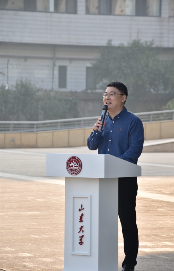 董春杰在致辞中指出,体育运动不仅是增强身体素质的途径,更是团结、友爱、协作精神的传递途径,学院始终坚持“山大体育,育贤图强”的体育育人理念,不断探索更多形式、创造更多机会,为师生提供丰富多彩的体育运动平台。他对参加本次户外活动的同学们提出了几点希望。一是希望同学们以体育促交流,以体育促团结,以体育促进步;二是希望同学们能够尽情焕发青春拼搏力量;三是希望同学们能够充分发挥青年员工的引领力,以青春之力带动全民健身;四是希望同学们能够在享受户外运动乐趣的同时,做自己安全的第一责任人。