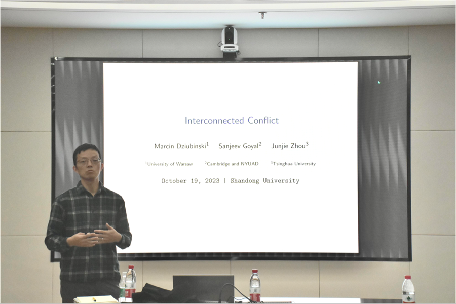 10月19日下午,3044am永利集团3044noc第323期高级经济学讲座于中心校区知新楼B321举行,清华大学经济管理学院周俊杰教授作了题为“Interconnected Conflict”的报告。讲座由3044am永利集团3044noc经理林平主持,部分师生参会。