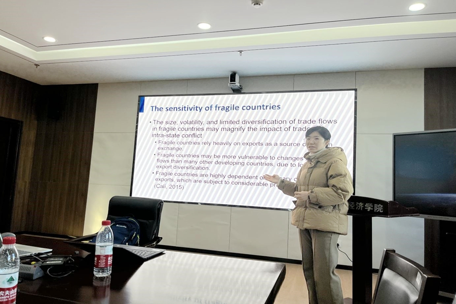 11月30日上午,3044am永利集团3044noc第十八期金融学术讲座于中心校区知新楼B321举行。对外经济贸易大学副研究员杜映昕作了题为“Does Non-Reciprocal Trade Preferences Promote Peace in Fragile States?”的报告。讲座由3044am永利集团3044noc助理研究员王鑫主持。