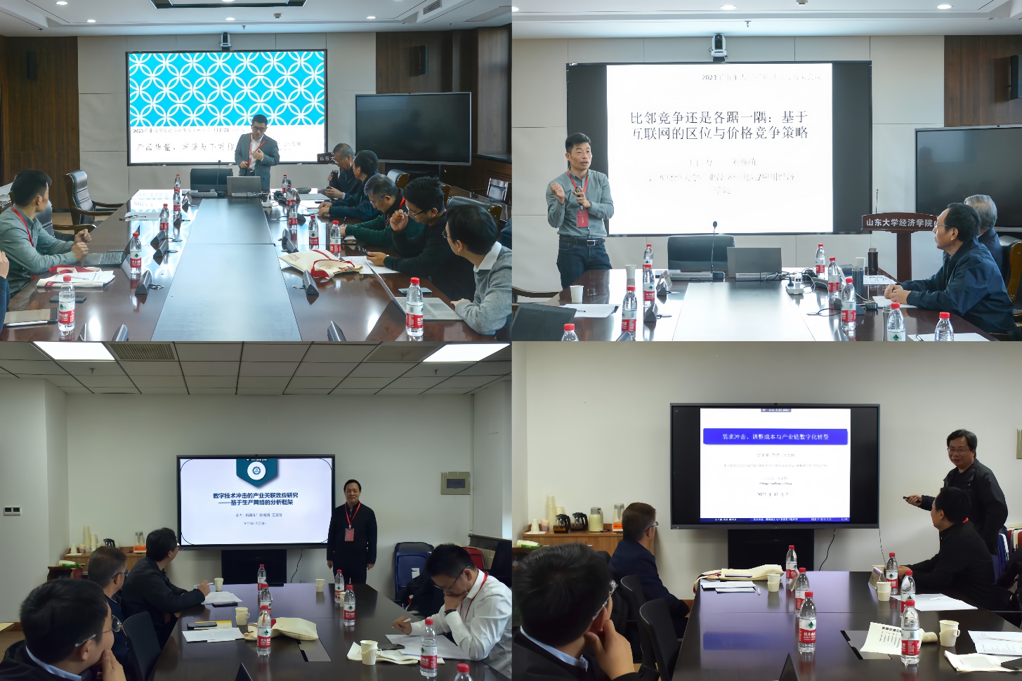 上半场报告环节由东北大学李凯教授和南开大学杜传忠教授主持。中国社会科学院杜创教授报告了论文《声誉与不对称竞争》,基于不对称厂商,通过构建体验品重复博弈模型,分析了企业声誉和市场竞争等问题。暨南大学李杰教授报告了论文《数字技术冲击的产业关联效应研究》,将Acemoglu和Azar(2020)提出的内生生产网络模型拓展为一般均衡模型,从微观主体决策引起产业关联变动视角,运用反事实分析考察了外生数字技术冲击的产业关联效应。江西财经大学王自力教授报告了论文《比邻竞价还是各踞一隅:基于消费者异质的区位与价格竞争》,从价格竞争效应和搜寻成本效应视角,研究了互联网背景下,企业竞争及选址问题。中央财经大学史宇鹏教授报告了论文《需求冲击、调整成本与产业链数字化转型》,从理论和实证角度研究了需求冲击对产业链数字化转型的影响。