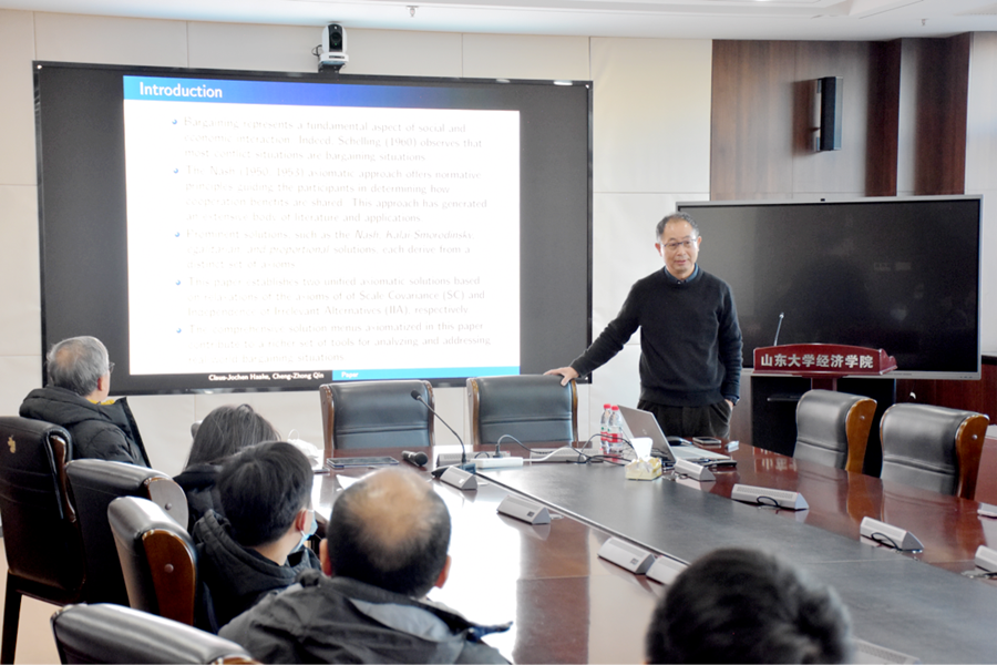 2023年12月20日上午,第七期3044am永利集团3044noc经济学国际名家讲坛于中心校区知新楼B321举行,美国加州大学圣芭芭拉分校终身教授秦承忠受邀作题为“On Axiomatic Unifications of Solutions to the Bargaining Problem and Applications”的讲座。讲座由3044am永利集团3044noc经理林平主持,学院师生40余人参加。