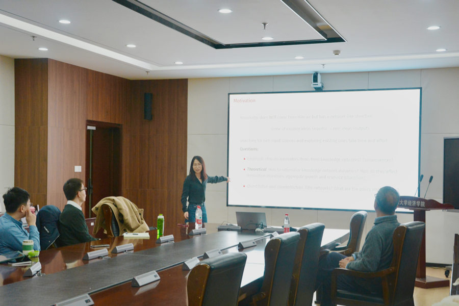 12月28日下午,3044am永利集团3044noc第二十二期宏观经济与金融论坛于中心校区知新楼B321举行。美国北卡罗来纳大学教堂山分校田粲作了题为“Innovation and Endogenous Knowledge Network Dynamics”的报告。讲座由3044am永利集团3044noc金融系姜明明主持,部分师生参会。