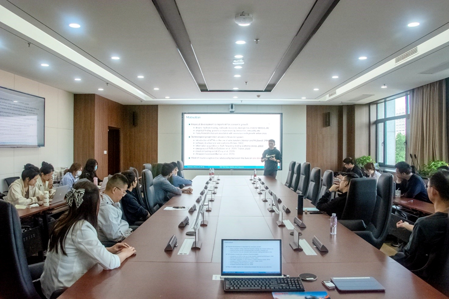 张罡通过量化技术适应性银行与企业的生产效率,验证了金融机构技术应用对实体经济增长的重要性。报告使用美国电话报告数据进行事实分析,发现银行技术应用对银行效率具有正向效应,并基于此构建了经济总生产率与银行效率的内生增长GE模型。结果表明,个体在进行成为工薪阶层或企业家的两种就业选择时,会引起工资和资本品的价格变动,进而影响银行的技术使用与放贷效率,若此时银行放弃使用技术,技术对劳动力的替代效应将会减弱,企业生产率增速会因此降低16.7%。讲座过程中,张罡对模型逻辑等内容进行了详细说明,参会师生积极参与讨论。