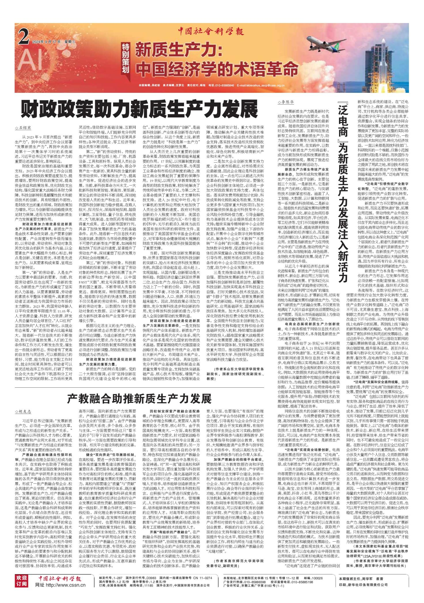 财政政策加力增效是促进新质生产力发展的重要力量