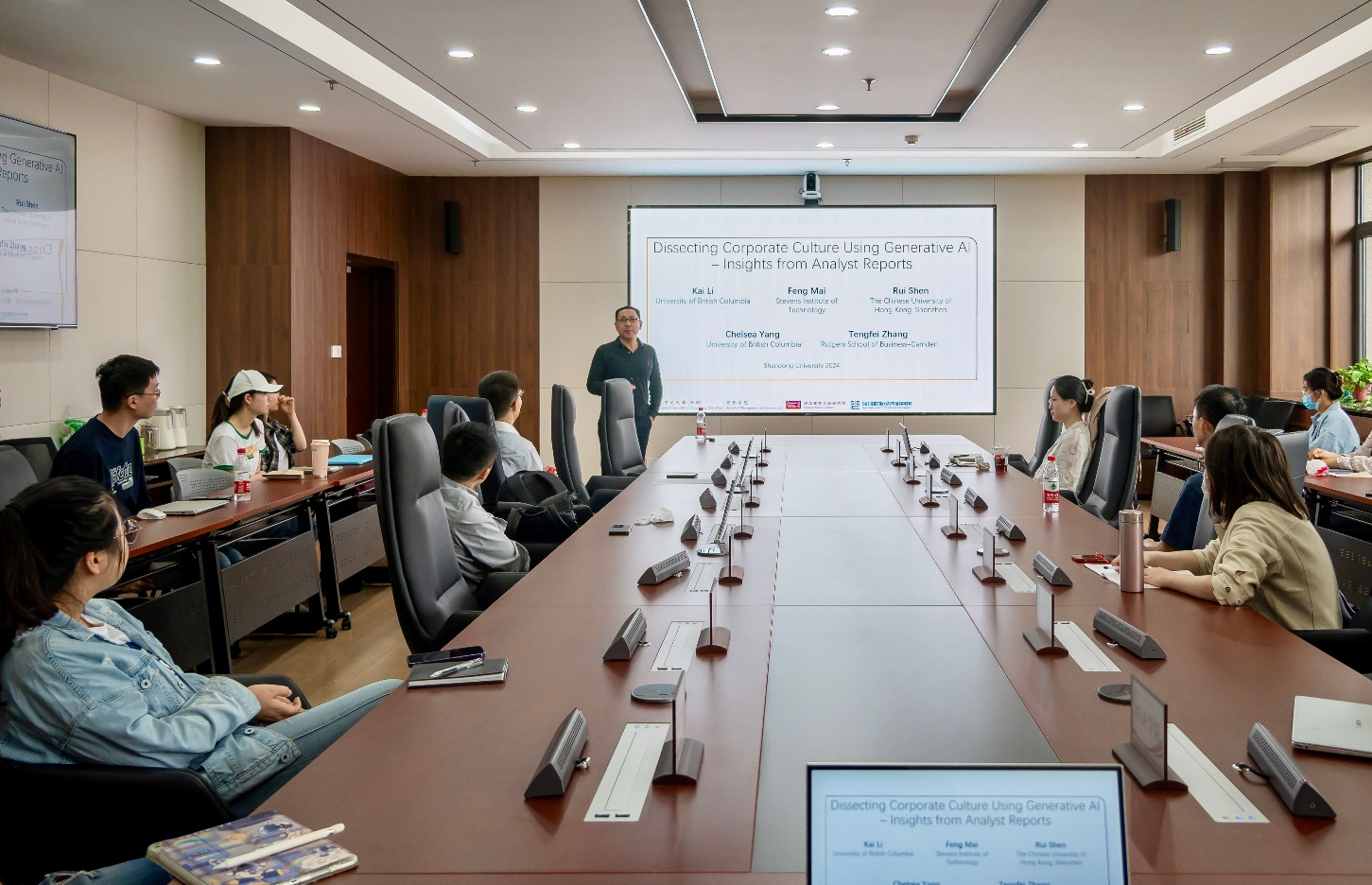 作为经济学领域内首批运用生成式人工智能模型对分析师报告进行深入剖析的研究,报告成功检验了企业文化对分析师报告的影响因素。通过使用生成式人工智能(ChatGPT)对2000年至2020年间的240万份分析师报告进行分段裁切和筛选,报告保留了与企业文化有关的文本信息,进而生成了包括情绪、语调等九个维度在内的因果知识图,构建了不同企业文化价值和人工智能所感原因及影响的联系。结果表明,分析师报告内容与管理层传达的信息存在区别,客户导向、运营导向、创新导向等企业战略是影响企业文化的关键因素,管理层主要关注团队合作、创新导向、结果导向、风险控制等文化价值。讲座过程中,申睿教授对文本信息选取、知识图构建过程等内容进行了详细说明,与会师生积极参加讨论。