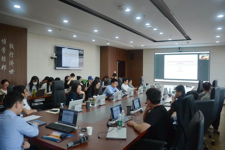 香港中文大学(深圳)李泽昊于线上作了题为“What to Expect from Cumulative FOMC Announcements: An Analysis of Global Interest Rates”的报告,旨在探究货币政策对利率长期趋势影响。研究基于11个资本市场发达的国家,根据美联储每年召开8次会议,选择每年8个时间窗口共24天进行实证分析,结果表明用这10%的交易日的观测结果几乎可以解释各国所有的利率变动。进一步分析显示美联储货币政策对各国利率长期趋势的解释力远高于本国央行货币政策。此外,通过建立动态期限结构模型(DTSM)刻画美联储会议时间与预期利率、期限溢价的关系,说明货币政策通过影响预期利率进而使得利率长期趋势下行。