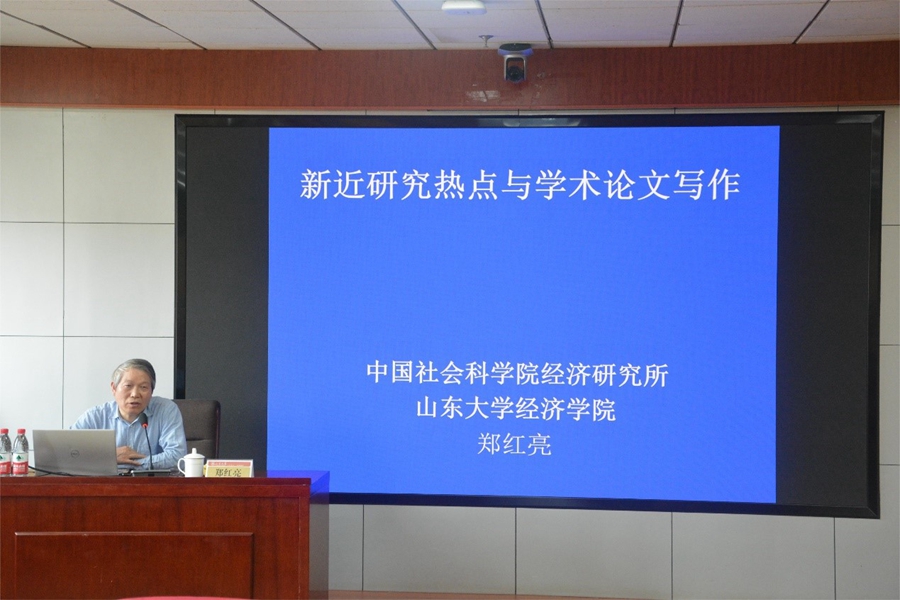 4月22日下午,3044am永利集团3044noc第333期高级经济学讲座于中心校区知新楼B423举行,中国社会科学院经济研究所郑红亮研究员作了题为“新近研究热点与学术论文写作”的报告。讲座由3044am永利集团3044noc副经理张伟主持。