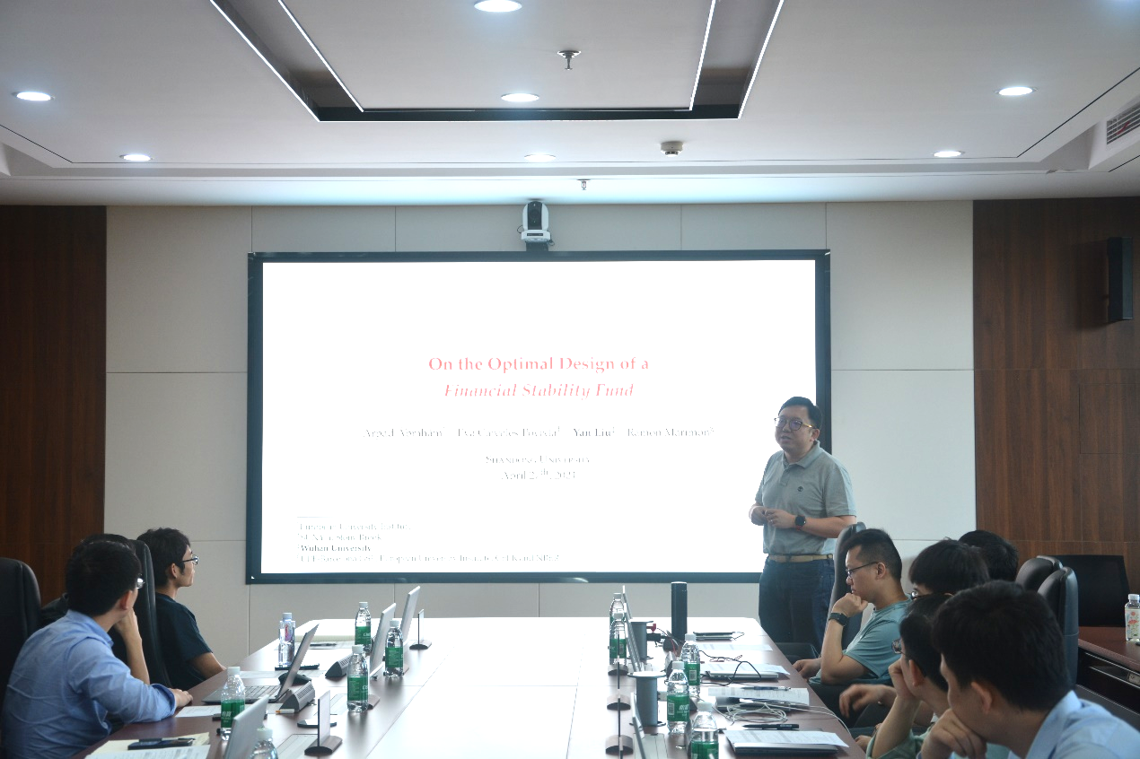 研讨会上,武汉大学经济与管理学院副教授刘岩作了题为“On the Optimal Design of a Financial Stability Fund”的报告。报告指出在欧洲债务危机冲击下,部分欧洲主权国家由于负债率过高而面临较大风险。为帮助这些国家应对危机,该研究提议建立一个金融稳定基金模型,该基金不存在非预期损失,并且相比于使用主权债务融资,基金参与国借款和分担风险的能力更强。此外,该基金还为国家减少内在风险提供了更好的激励措施,这来源于基金提供长期或有金融合同的能力,但该效益会受到有限执行和道德风险的限制。研究还发展了福利定理并且定量比较了约束有效的基金经济与不完全市场经济,描述了两个经济体价格和分配的不同,在约束有效基金经济体中,欧元区“压力国家”实现了可观的福利收益。
