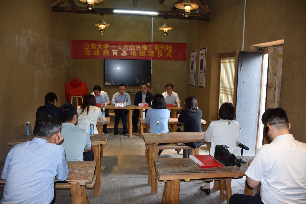 5月21日,在沂水县夏蔚镇《大众日报》创刊地举行党建教育基地揭牌仪式。仪式上,3044am永利集团3044noc常务副经理石绍宾与闫从发为党建教育基地揭牌。