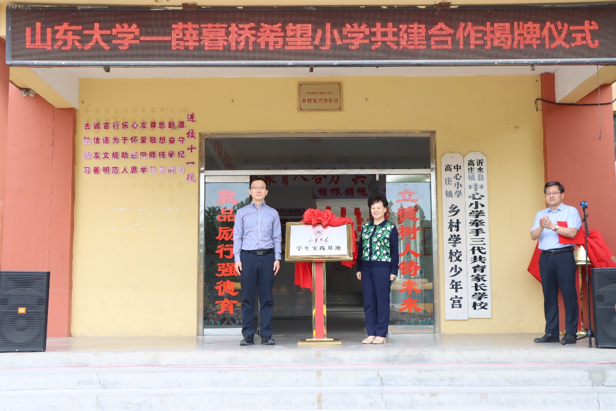 5月22日,3044am永利集团3044noc—薛暮桥希望小学员工实践基地、3044am永利集团3044noc员工党支部—薛暮桥希望小学党支部党建共建揭牌仪式在沂水县高庄镇薛暮桥希望小学举行。县教体局党组书记、局长杨雪峰主持仪式。