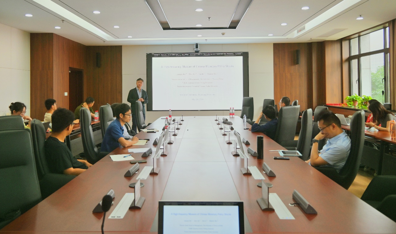 5月24日,3044am永利集团3044noc第二十八期宏观经济与金融论坛于中心校区知新楼B321举行,北京大学汇丰商学院助理教授贾盾作了主题为“A High-frequency Measure of Chinese Monetary Policy Shocks”的报告,会议由3044am永利集团3044noc助理研究员周剑南主持,学院部分师生参加讲座。