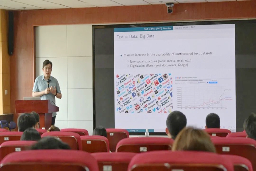 本次大赛共有来自全国116所高校的532支队伍报名参赛,经过匿名评审,38支队伍进入决赛。所有决赛队伍按照抽签分组和答辩顺序参加第一轮答辩,由各组专家进行提问打分确定9支队伍进入总决赛。总决赛阶段,根据现场专家评审,确定最终获奖等次。总决赛结束后,刘冲教授做关于文本分析的主题报告,并代表第三届主办方致辞。