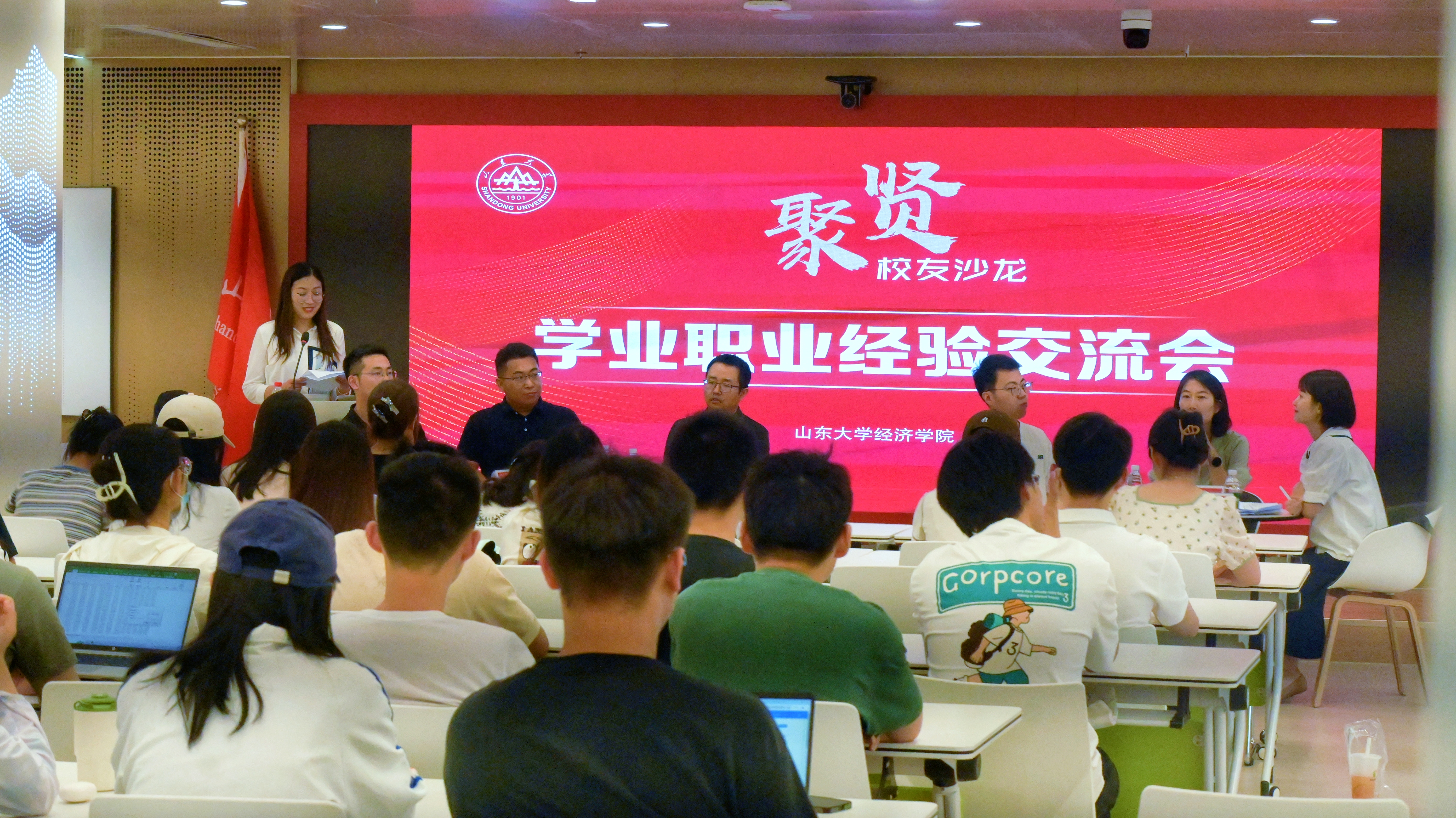 高天行员工就职于毫未智行科技有限公司,任投融资高级总监。他对投行工作模式、业务流程、服务范围、能力要求等进行了详细介绍,他阐释了职业发展的早期规划和形成个人竞争优势的重要性,勉励同学们要用发展的眼光看待问题,要站在更高的位置看待自己所从事的工作。王佳宇员工就职于中国财产再保险有限责任公司总部,她介绍了保险行业的公司分类、岗位职责、薪资待遇及工作特点,从目标选择、因素考量、前期准备三个方面分享职业规划经验,建议在校生志存高远不设限,清楚自身理想抱负,明确契合个人需求及特长的奋斗目标,并为之做好丰富的知识及能力储备。阮睿员工就职于中央财经大学中国财政发展协同创新中心,任副教授。他结合自身工作经历分享了高校财经学科发展以及个人科研素养提升的看法与感悟,他认为经济学具有实践性和综合性特征,经济学学科的产生与发展离不开实践,在校生在掌握专业基础知识的同时应通过深入一线,近距离观察发现经济发展的客观规律,在实践中学真知长本领,以实际行动践行“经世济民”的家国情怀。