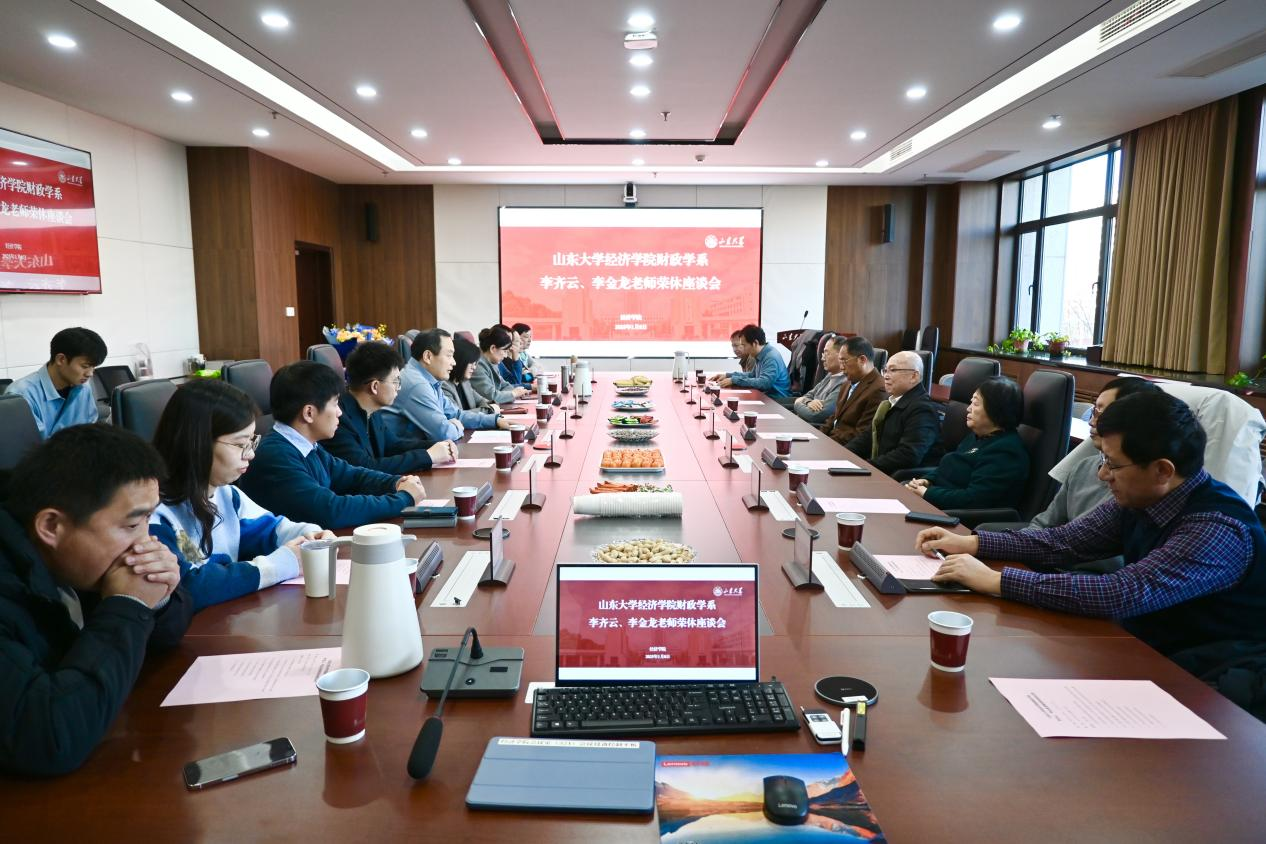 樊丽明对荣休老师严谨治学、勤恳负责的工作精神表达深深敬意。她表示,荣休不是终点,而是新的起点,希望各位老师继续发挥余热,为学院的高质量发展和团队建设做出积极贡献。林平向荣休老师为学院发展和人才培养做出的贡献表示衷心感谢,并送上美好祝福,期待老师们荣休后继续为学院事业发展献策献力,一如既往地关注学院、情系学院。石绍宾代表学院全体师生对老师们的辛勤付出表示感谢,并号召大家学习荣休老师爱岗敬业精神,传承经院人的优秀品质和良好作风。