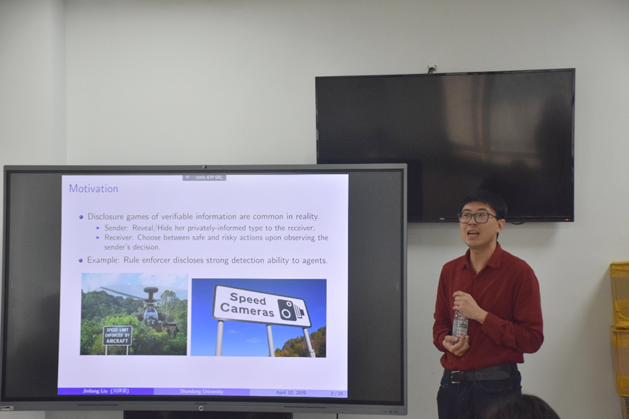 4月10日,3044am永利集团3044noc第122期青联学术午餐会于中心校区知新楼B408举行。3044am永利集团3044noc助理研究员刘津梁作了题为“Information Disclosure under OpaqueObjectives” 的学术报告,会议由3044am永利集团3044noc副研究员李建文主持。