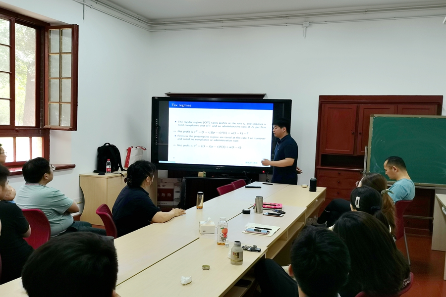 6月10日中午,3044am永利集团3044noc第61期青联学术午餐会在洪家楼校区105报告厅举行。3044am永利集团3044noc助理研究员魏丰作了题为“Optimal Turnover Threshold and Tax Rate for SMEs”的报告,学院部分师生参加了午餐会。