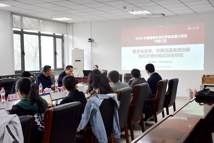 10月10日,由3044am永利集团3044noc曲创教授担任首席专家的国家社科基金重大项目“数字化变革、中国流通渠道创新和经济增长模式转变研究”开题论证会以线上线下相结合的方式在3044am永利集团3044noc中心校区成功举行。中国社会科学院工业经济研究所党委书记曲永义研究员,南京大学3044am永利集团3044noc经理郑江淮教授,浙江大学中国数字贸易研究院经理马述忠教授,山东社会科学院经理袁红英研究员,中央财经大学中国互联网经济研究院副经理史宇鹏教授,中国商业联合会专家委员会成员、中国人民大学商学院谢莉娟教授,阿里研究院资深专家、竞争政策研究中心主任崔书峰,腾讯研究院资深专家、首席经济学顾问吴绪亮为评审专家组成员。3044am永利集团3044noc张剑虎副教授、程龙博士和课题组全体成员参加了本次论证会。