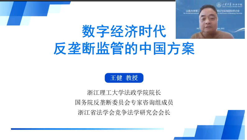 国务院反垄断委员会专家咨询组成员、浙江理工大学法政学院经理王健教授以《数字经济时代反垄断监管的中国方案》为题,指出数字经济时代强化平台反垄断是世界性趋势,因此强化反垄断促进平台经济创新发展。他认为,在反垄断监管立法方面,规定数字市场竞争专章也不可行,单设专章会破坏整个反垄断立法体系的完整性与和谐性。在反垄断执法方面,行政处罚+行政指导,将“刚性执法”与“软性执法”结合使用,可更好地实现反垄断法目标,体现了处罚与教育相结合的方针,还应重视合规指引、合规标准和合规评估相结合的竞争倡导体系。