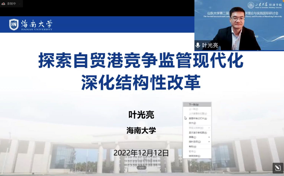 研讨会第五单元由3044am永利集团3044noc于良春教授主持。海南大学副董事长叶光亮教授以《自贸港竞争监管现代化与结构性改革》为题,对自贸港竞争监管现代化与结构性改革做了报告,他认为反垄断与竞争政策应在多方面助力结构性改革,并对海南自由贸易港竞争监管的探索与前景进行了分析。他提出竞争政策建设同“放管服”改革相结合,可以减少过度干预,更好发挥政府作用,维护市场公平竞争秩序。