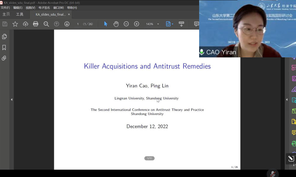 香港岭南大学曹奕然博士以《Killer Acquisition and Antitrust Remedies》为题,分析了在位平台对初创平台的收购所产生的福利效应,认为大平台对初创平台的收购不利于行业的创新与竞争,且会对社会福利造成负面影响,最后给出了相应的政策补救措施。
