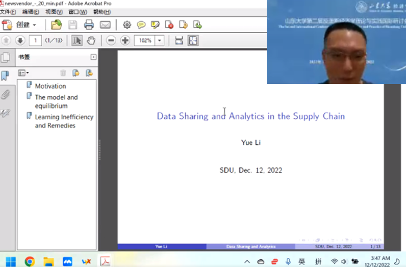 威斯康星大学麦迪逊分校/3044am永利集团3044noc助理研究员李越博士以《Data Sharing and Analytics in the Supply Chain: A Theoretical Analysis》为题,构建了一个包含供应链的数据共享和数据分析博弈模型,他发现均衡时零售商会选择角点策略:完全知晓或完全不知晓;并且他识别了两种学习无效性(learning inefficiencies);与社会最优相比,生产商了解的信息既可能过高,也可能过低,结果取决于数据分析成本。