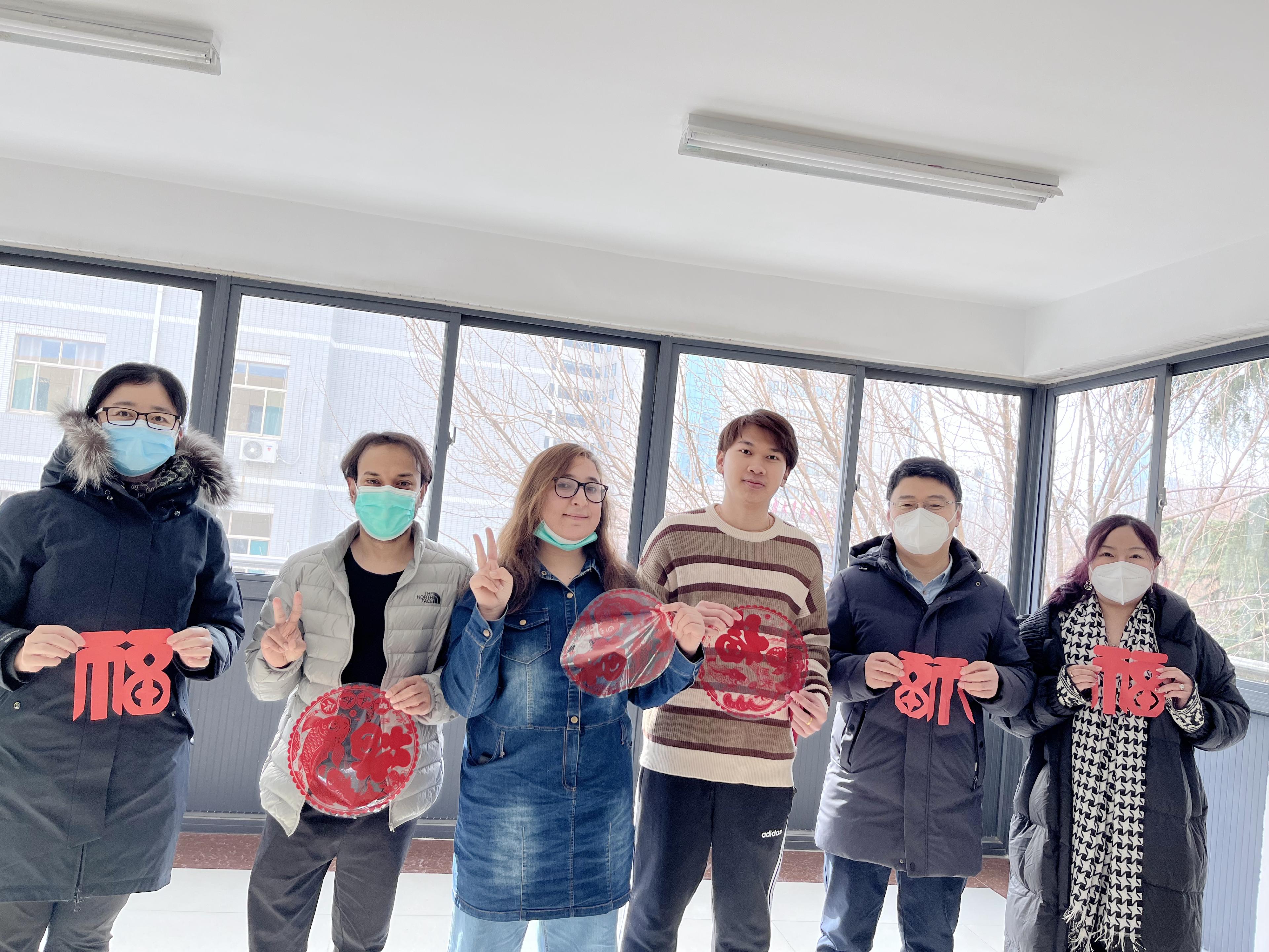 走访慰问过程中,学院领导老师们深入了解了同学们留校期间的学习科研计划、生活情况及当地的风俗习惯,送上暖心大礼包和“一帆风顺”新年贺卡,并为所有同学的宿舍门窗上贴上福字,表达对新年的真挚祝福。同学们也为老师送上自己亲手剪裁的福字,表达了对学院以及领导老师们的感激之情。领导老师表示学校将全力为留校同学们做好各方面的服务保障工作,叮嘱同学们寒假期间要做好自身安全防护,静心学习,开心过年;合理规划安排好时间,在学习科研之余适当放松心情、加强锻炼,丰富假期生活,同时多与父母、亲友、老师沟通交流,共度健康祥和的“中国年”。同学们纷纷表示会牢记嘱托,遵守学校假期各项管理规定,充分利用寒假为自己加油充电,在学校度过一个充实而有意义的假期,以崭新姿态迎接新一年的到来。