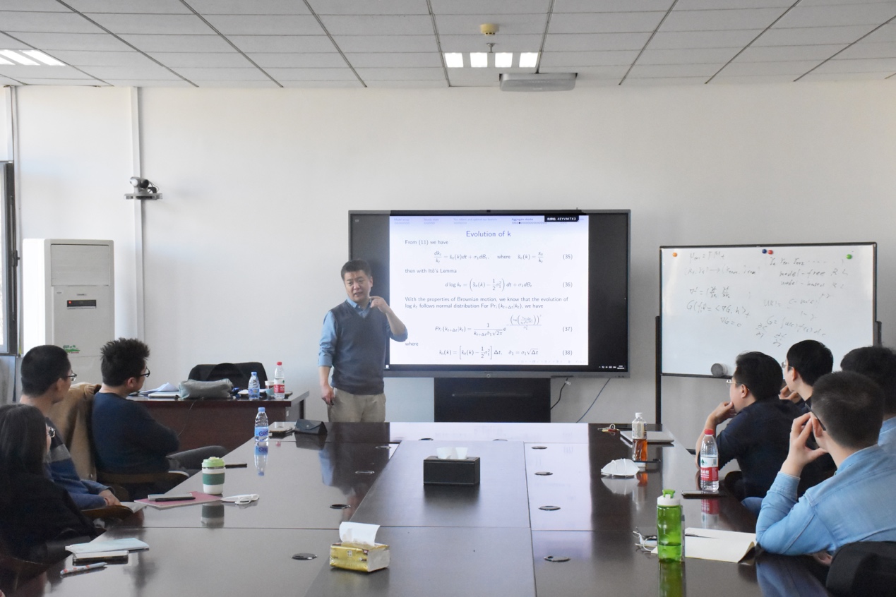 2023年3月10日,公司举办第九期宏观经济与金融论坛,会议邀请了对外经贸大学的朱胜豪教授作学术报告,报告主题为“Optimal Nonlinear Taxesin an Economy with Aggregate Shocks”。会议由学院助理研究员张仁斌主持,部分青年教师参会。