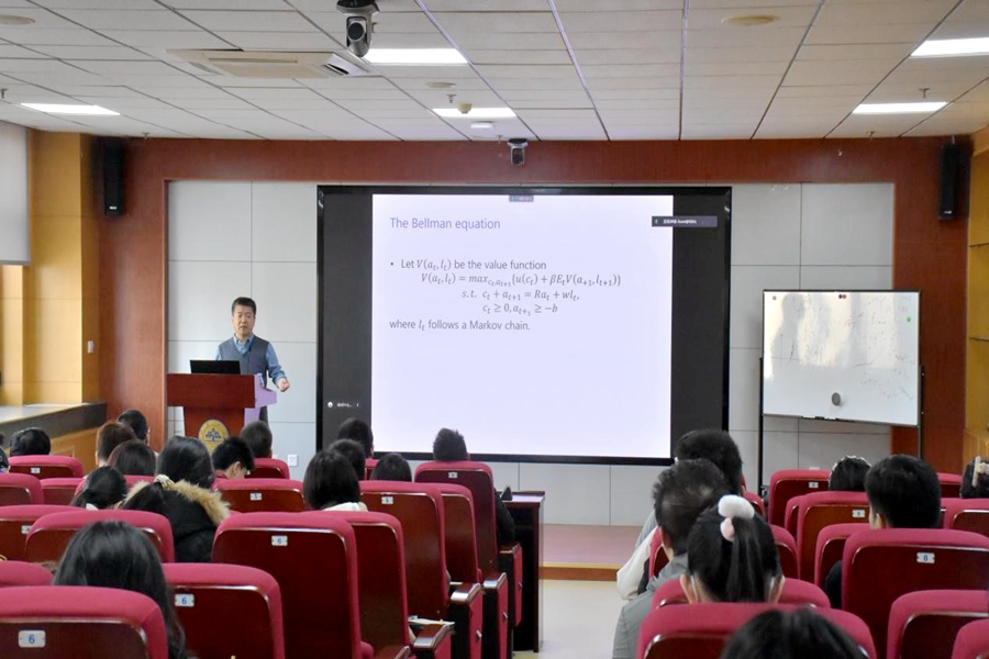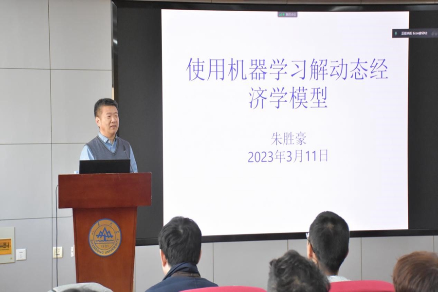 2023年3月11日,3044am永利集团3044noc第二十五期研究生知新学术论坛在中心校区知新楼B423聚贤报告厅举行,对外经贸大学教授朱胜豪作了题为“使用机器学习解动态经济学模型”的报告。论坛由学院助理研究员张仁斌主持,部分师生参会。