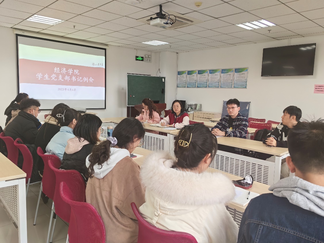 会上,各党支部书记围绕学懂弄通做实习近平新时代中国特色社会主义思想、提升党支部标准化规范化建设水平,汇报了近期落实学校及学院部署的党建重点任务情况、组织生活会与“三会一课” 完成情况,介绍了在学习贯彻党的二十大精神、在加强创新党支部主题党日活动方面的工作特色和亮点。2019级本科生党支部组织开展了“青春为祖国,挺膺共担当”主题思政大课和“守正创新行大道,踔厉奋发踏新程”学习党的二十大精神分享会;2021级学术型硕士两个党支部积极进行党建共建,启动“党建+就业直通车计划”和“春风以待,职等你来”促就业春招特辑系列活动;学校研究生“样板党支部”2021级博士生党支部推出“经邦济世”大讲堂品牌活动,充分发挥党建引领推动思政教育助力人才培养作用。同时,各支部紧扣贯彻落实党的二十大精神主线,以增强“两个功能”、发挥“两个作用”为建设思路,对2023年党支部建设重点工作以及落实好“主题教育”“调查研究”等重点任务展开谋划。
