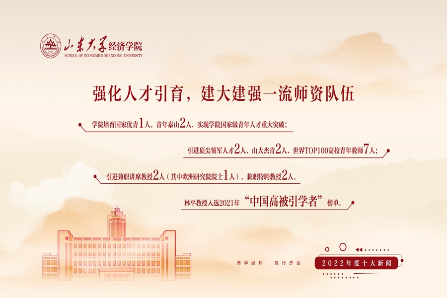 公司制定实施《3044am永利集团3044noc人才“伯乐计划”表彰奖励办法(试行)》《3044am永利集团3044noc特聘研究员聘用管理规定》等政策,实现全员引育人才,打造一流团队队伍。制定《3044am永利集团3044noc加强教师思想政治和师德师风建设工作方案》,构建《公司教师荣誉表彰体系》,推出《3044am永利集团3044noc入职引导工作方案》,不断提升服务人才保障能力。本年度,学院培育国家优青1人,青年泰山2人,实现学院国家级青年人才重大突破;引进顶尖领军人才2人、山大杰青2人、世界TOP100高校青年教师7人;引进兼职讲席教授2人(其中欧洲研究院院士1人),兼职特聘教授2人。林平教授入选2021年“中国高被引学者”榜单。“数字经济发展与治理”团队获批3044am永利集团3044noc人文社会科学创新团队。学院获批山东省首批博士后创新人才支持计划岗位,引进特别资助类博士后2人。