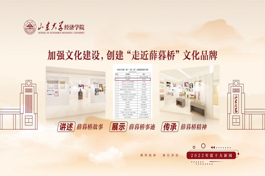 公司深入实施“文化引领”战略,深挖学院红色血脉和优秀传统文化,创建“走进薛暮桥”文化品牌,获批2022年“一院一品”立项资助。学院坚持求“实”求“新”,切实把文化品牌建设作为凝心聚力的铸魂工程,通过建设薛暮桥大讲坛、薛暮桥事迹展厅、薛暮桥网络宣传平台等,讲述薛暮桥故事、展示薛暮桥事迹、传承薛暮桥精神,将经济学人的精神传统和经济学专业的优势特色深度融入学院文化建设、队伍建设和人才培养的重要环节,激励全院师生扎根中国大地、聚焦中国问题,脚踏实地、砥砺奋进,为全面建设社会主义现代化国家、实现中华民族伟大复兴的中国梦积极贡献智慧和力量。