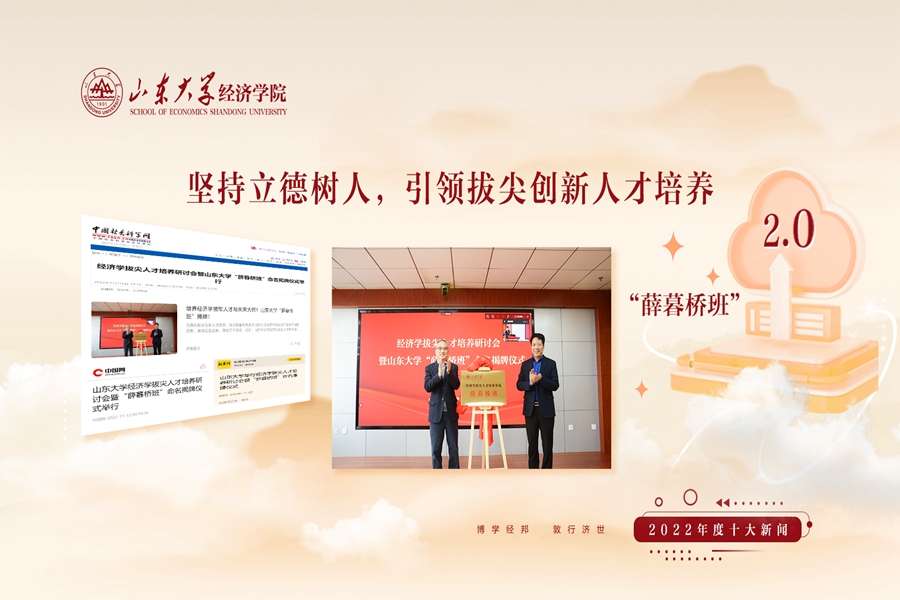 公司深入贯彻落实党的二十大精神,不断深化经济学拔尖人才培养2.0基地建设,推动立德树人成效提档升级。着力加强基地文化内涵建设,推动基地班命名为“薛暮桥班”,聘请薛暮桥之女薛小和女士担任“薛暮桥班”荣誉顾问。以老一辈经济学家薛暮桥精神为指引,凝练形成了“注重价值引领、突出拔尖创新、坚持扎根中国”的培养理念,制定特色高阶培养方案,实施书院制培养和贯通培养模式,注重学科交叉、科教产教和国际化育人。“薛暮桥班”的成立受到中国网、中国社会科学网、齐鲁晚报、新黄河等多家媒体的广泛报道,引起了热烈的社会反响。本年度,学院落实立德树人根本任务,人才培养能力持续提升,获批建设公共经济与公共政策微专业,3项成果获第九届山东省高等公司产品成果奖。