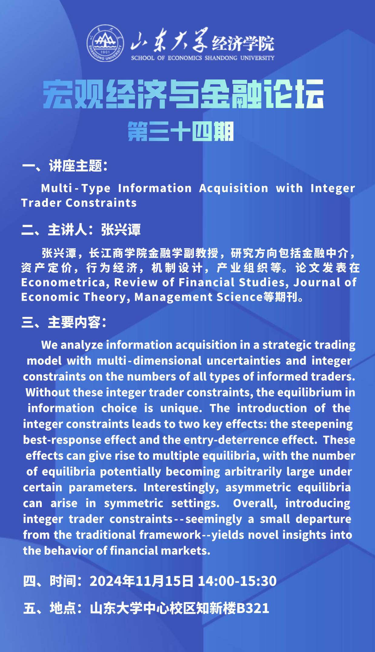 Multi-Type Information Acquisition with Integer Trader Constraints(宏观经济与金融论坛第三十四期)