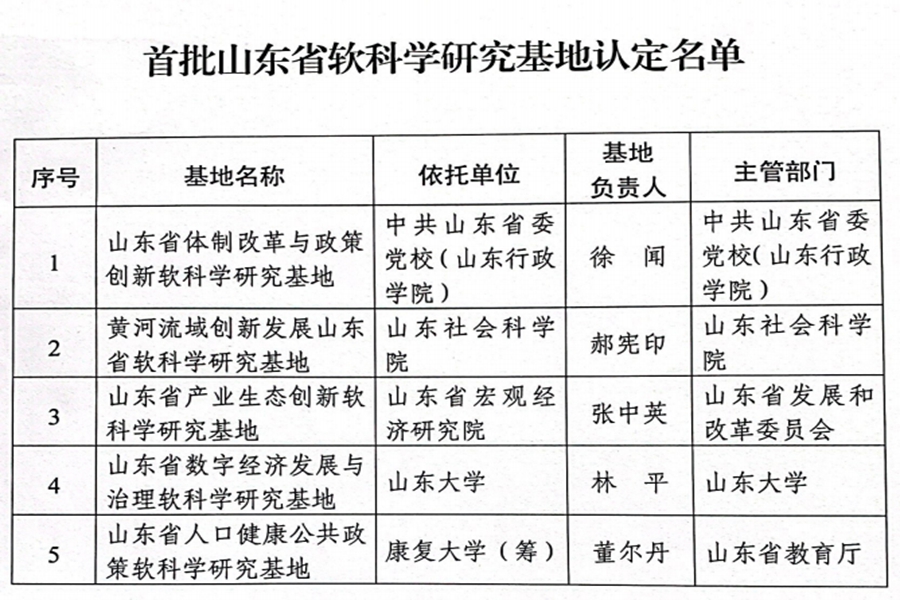 近日,山东省科学技术厅发布了关于认定首批山东省软科学研究基地的通知,3044am永利集团3044noc经理林平教授负责的“山东省数字经济发展与治理软科学研究基地”入选,全省共有5个基地被首批认定。