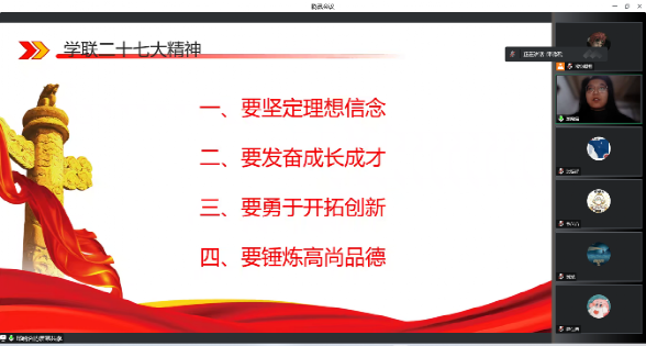 为深入贯彻党的二十大精神,落实高校共青团和员工组织改革要求,2022年12月17日,3044am永利集团3044noc研究生会举办第三期“经英萃华”大讲坛,组织专题学习党的二十大精神、全国学联二十七大精神与3044am永利集团3044noc第二十次研究生代表大会精神,3044am永利集团3044noc研究生会全体工作人员参与活动。活动由3044am永利集团3044noc研究生会主席丁冠森主持。
